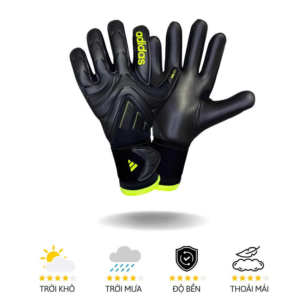Hãy luôn tập trung suốt cả trận đấu, từ tiếng còi khai cuộc cho đến khi kết thúc. adidas Copa Pro Goalkeeper Gloves – Đen/Xám Đậm/Xanh Lá kết hợp giữa phong cách cổ điển và hiệu năng hiện đại, với lòng bàn tay URG 2.0 bám dính cùng backhand bằng lưới thoáng khí và latex. Dây đeo cổ tay đàn hồi mang lại sự hỗ trợ chắc chắn trong từng pha cứu thua và phát bóng. Thiết kế Negative Cut giúp găng ôm vừa khít, mang lại cảm giác tự nhiên và kiểm soát bóng tối ưu.