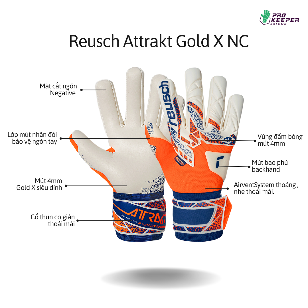 👉 Reusch Gold X Grip Negative Cut – lựa chọn đáng tin cậy cho những thủ môn muốn đạt đỉnh cao kiểm soát và độ bám bóng.