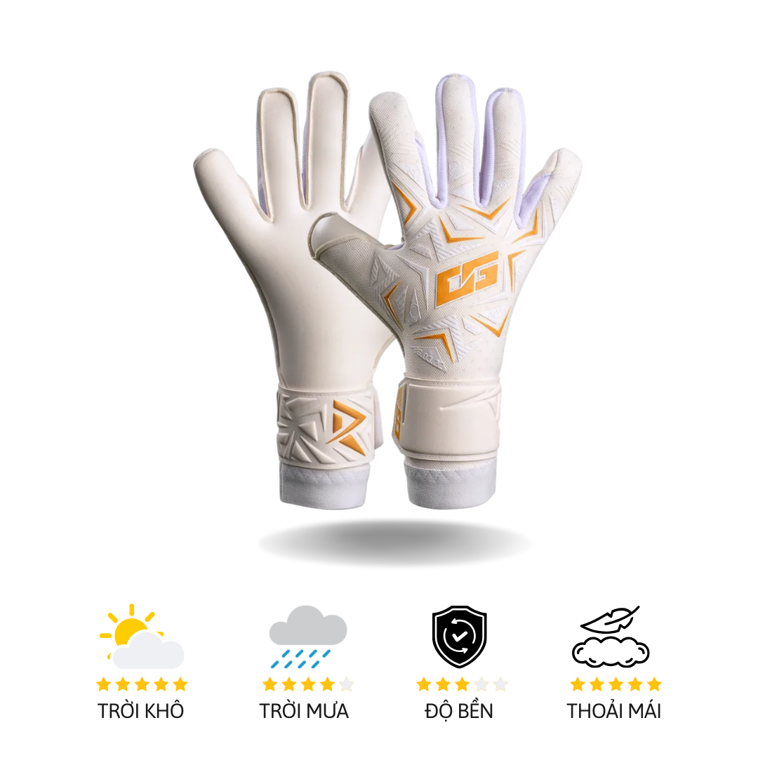 Màu trắng tinh khiết kết hợp chi tiết vàng mờ sang trọng, khẳng định đẳng cấp thủ môn số 1.
